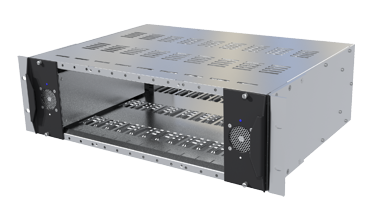 The Amulet Hotkey DXiP Rack Enclosure is a 3U enclosure with high availability and security features for DXR cards such as DXR-H4 KVM extender cards and DXR-Z4 secure zero client cards.